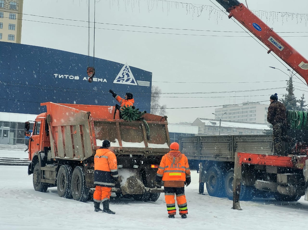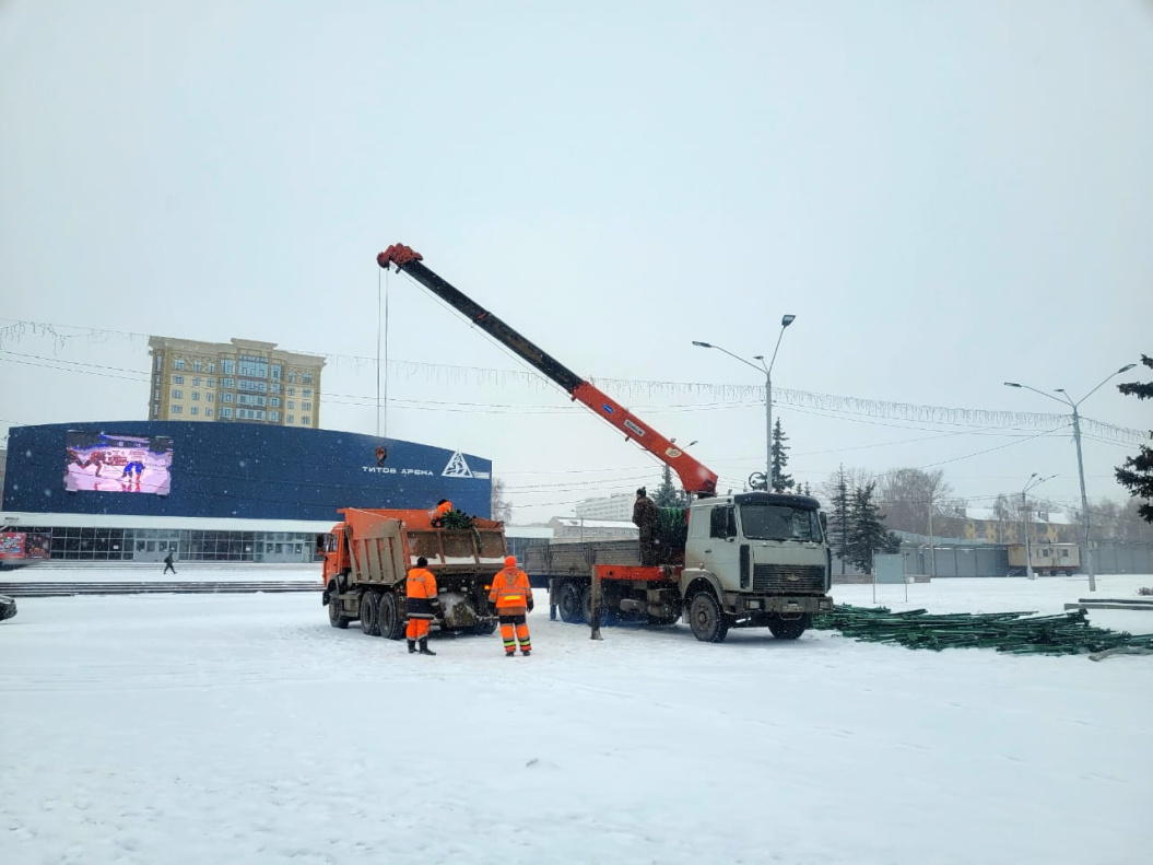 В настоящее время служба МБУ «Автодорстрой» завозит элементы ели, которую установят на главной новогодней площадке города. Завтра планируется начать ее сборку.