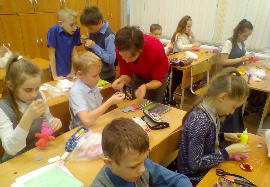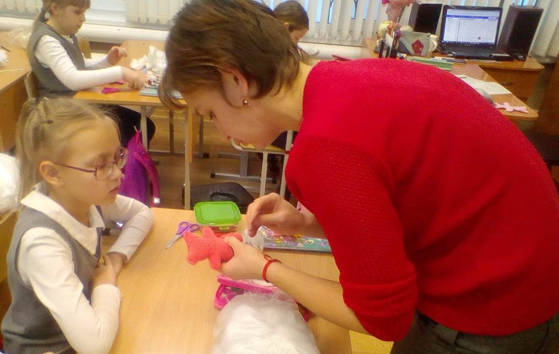 ТОС «Юбилейный» Ленинского района на базе гимназии №131 (ул.Антона Петрова, 218) организовал мастер-класс по пошиву мягкой игрушки медвежонка с фиалкой – символа Дня матери.