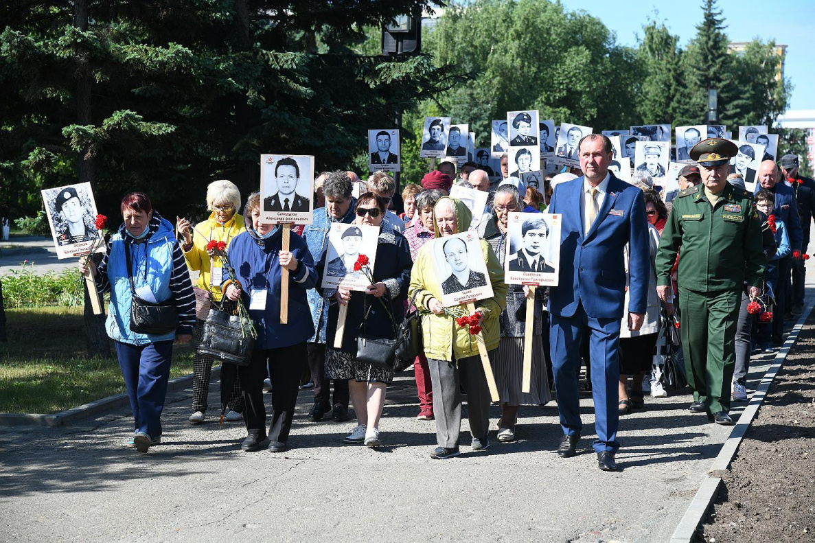 Памятное мероприятие началось с построения Бессмертного полка – портреты героев, погибших при исполнении воинского долга в Афганистане, Чечне, а также других локальных конфликтах, взяли в руки их близкие и волонтеры.