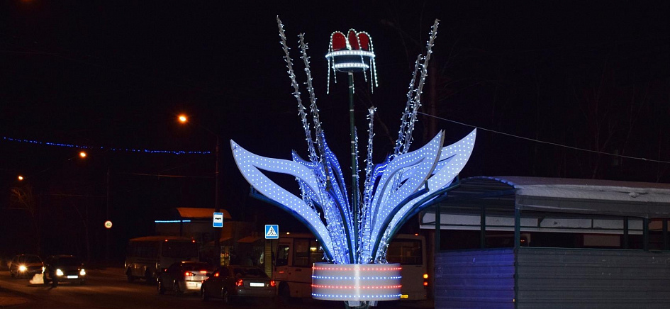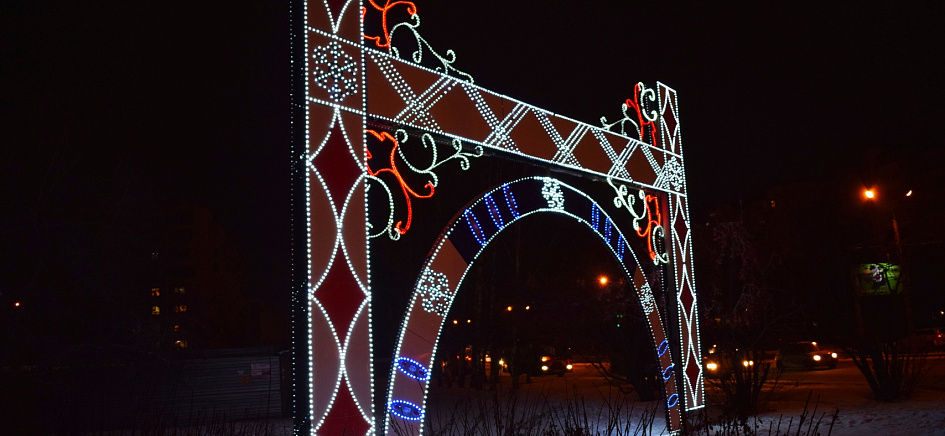 С наступлением сумерек город преображается с помощью световой иллюминации. На улицах размещено 65 новых объемно-пространственных световых конструкций, а также современные яркие консоли, виньетки и гирлянды.