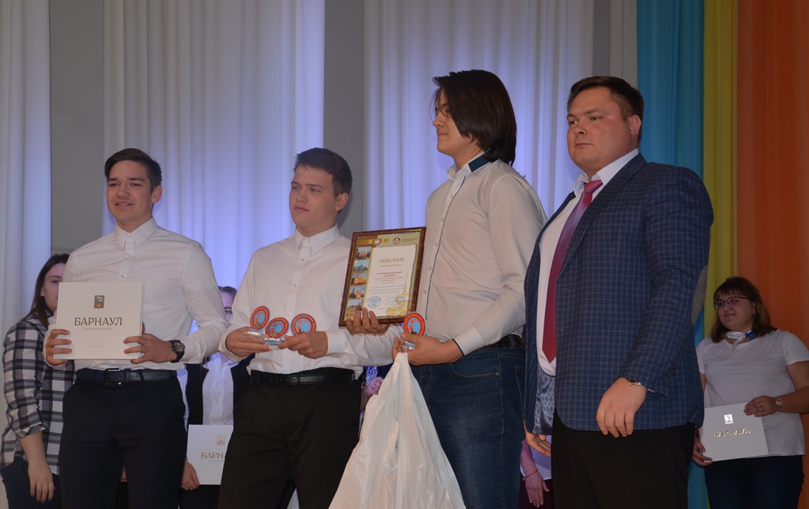 Председатель комитета по делам молодежи города Владимир Гудков отметил победителей волонтерских отрядов ссузов и ВУЗов города. Ими стали: I место - отряды «Саванта» Алтайского архитектурно-строительного колледжа и «ОЛИМП» Алтайской академии гостеприимства; II место - «Сила добра» Международного колледжа сыроделия и профессиональных технологий; III место - «Волонтеры Политеха» Алтайского государственного технического университета им.И.И. Ползунова.