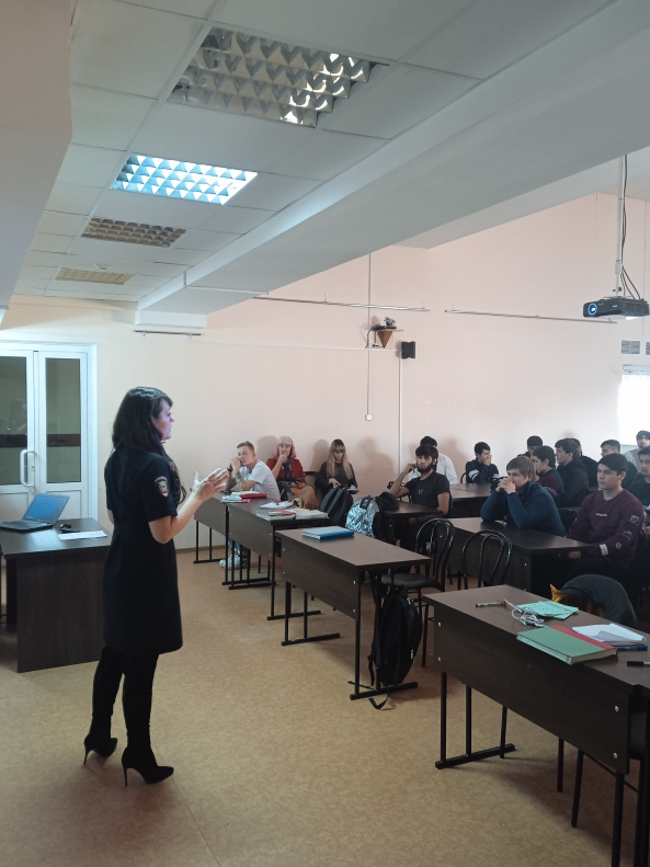 Суть профилактических занятий заключалась в доведении информации до студенческой молодежи о недопустимости совершения преступлений в сфере незаконного оборота наркотиков, совершения преступлений на фоне межрасовой и межрелигиозной ненависти, в целом недопустимости совершения преступлений экстремистского и террористического толка, а также освещение вопросов, о недопустимости совершения преступлений в социальных сетях, распития алкогольных и спиртосодержащих напитков и иных противоправных действий.