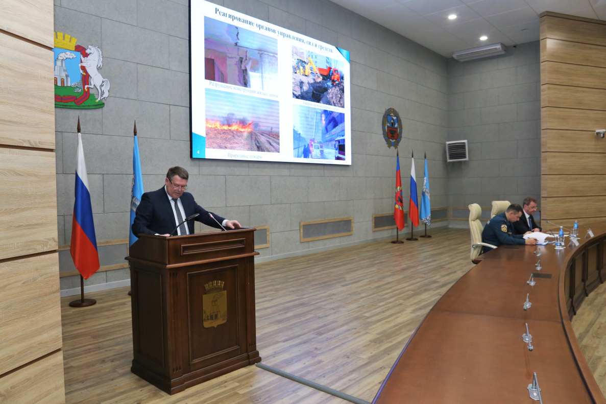 С докладом на совещании выступил начальник управления по делам ГОЧС Барнаула Владимир Драчев.