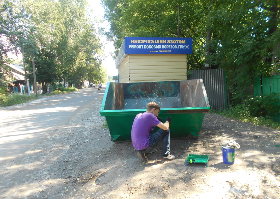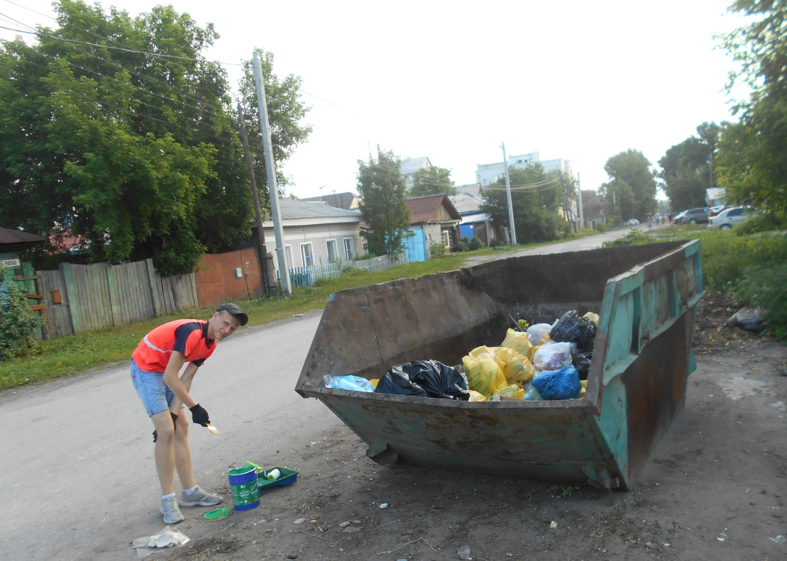 Сотрудники комитета жилищно-коммунального хозяйства города совместно со студентами-волонтерами и управляющими компаниями провели экологическую акцию по покраске 98 контейнеров для сбора мусора объемом 7,6 куб.метра на дорожных магистралях и территориях частного сектора города.