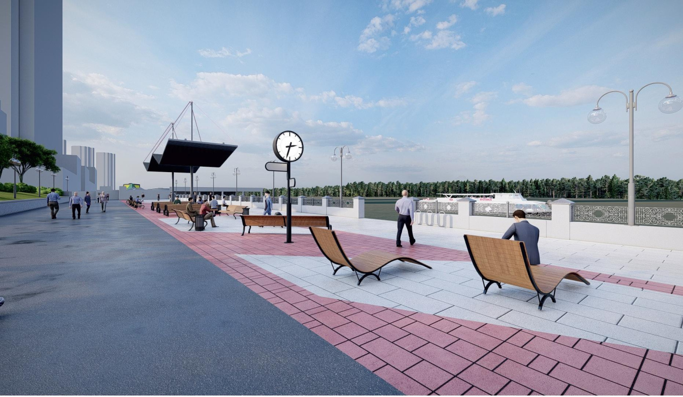 В целом на данной территории планируется создать центральную прогулочную аллею, площадку для ожидания водного транспорта и транзитную зону. Будет полностью заменено дорожное покрытие, установлены скамейки, солнцезащитные навесы, освещение. Кроме того, будет выполнен ремонт существующей подпорной стенки. Сумма реализации проекта составит 15,6 млн рублей.