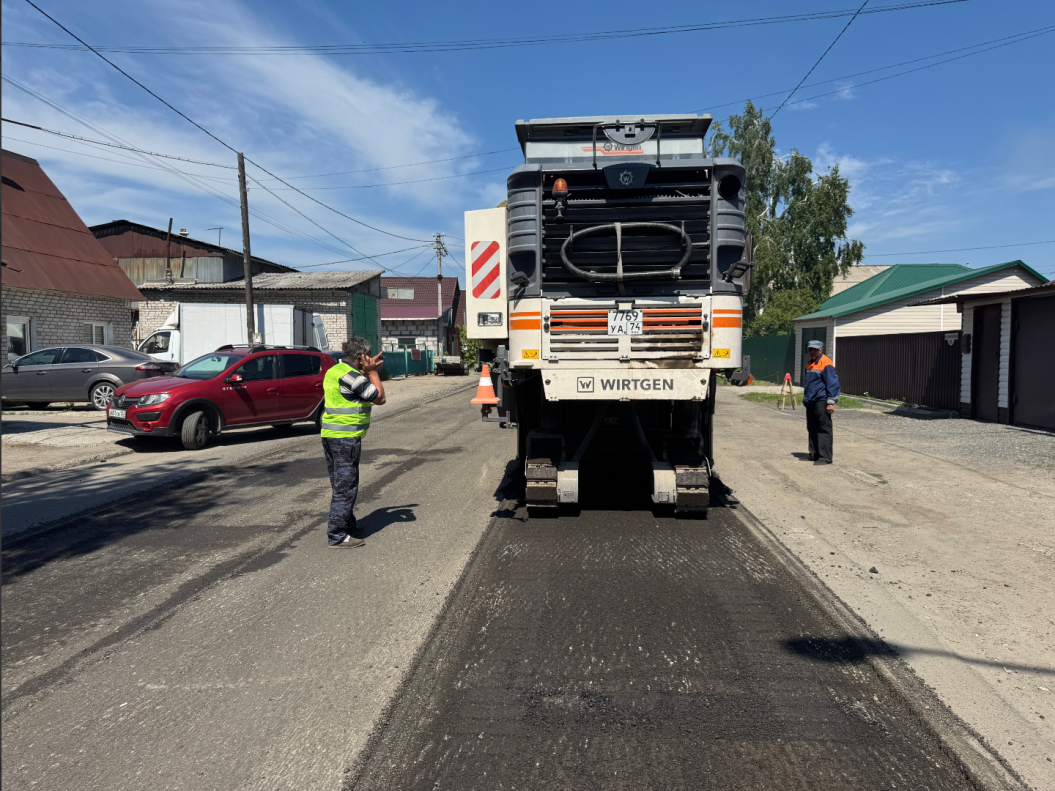 Еще один участок – ул. Меланжевая от ул. Матросова до ул. Смирнова, протяженностью 0,44 км. Здесь также идут подготовительные работы - фрезерование. Затем начнется установка бортового камня, укладка выравнивающего и верхнего слоя асфальта, а также обустройство тротуаров.