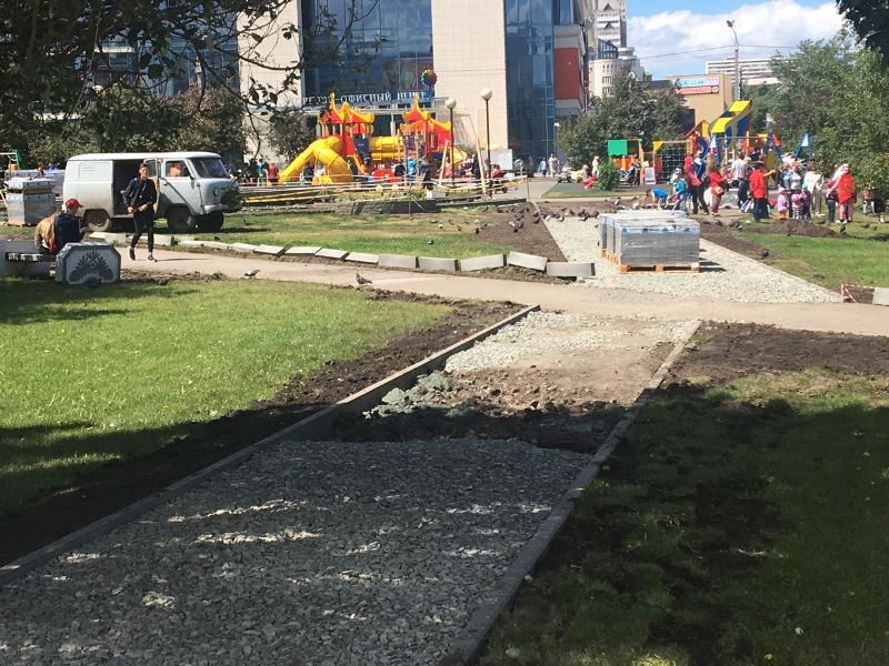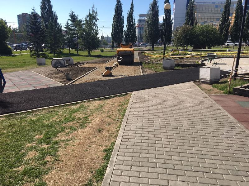 Обустройством сквера занялась компания «Адалин-строй», которая в течение прошлой недели заасфальтировала пешеходные дорожки, установила бордюры, положила новое плиточное покрытие.