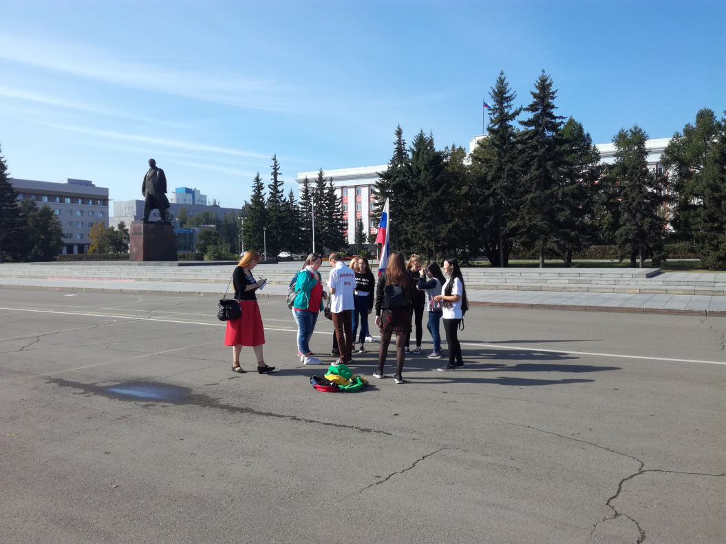 Молодежный Флешмоб прошел у стелы Нулевого километра (пр-кт Ленина) с участием волонтерских отрядов, активной студенческой молодежи г.Барнаула. Организаторами флешмоба выступил комитет по делам молодежи.