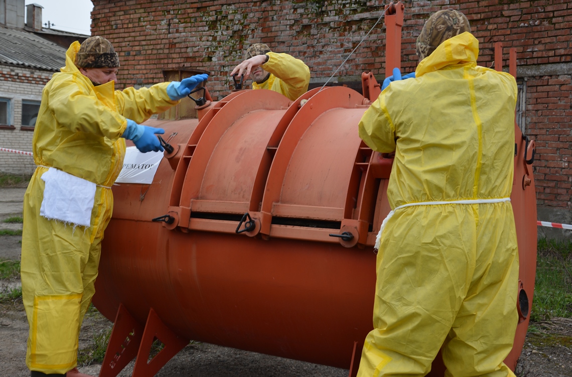 На третьем этапе состоялась тренировка по устранению последствий взрыва и возгорания в газовой котельной завода АТИ, где проверялась отработка спасательных служб, сформированных на предприятии.