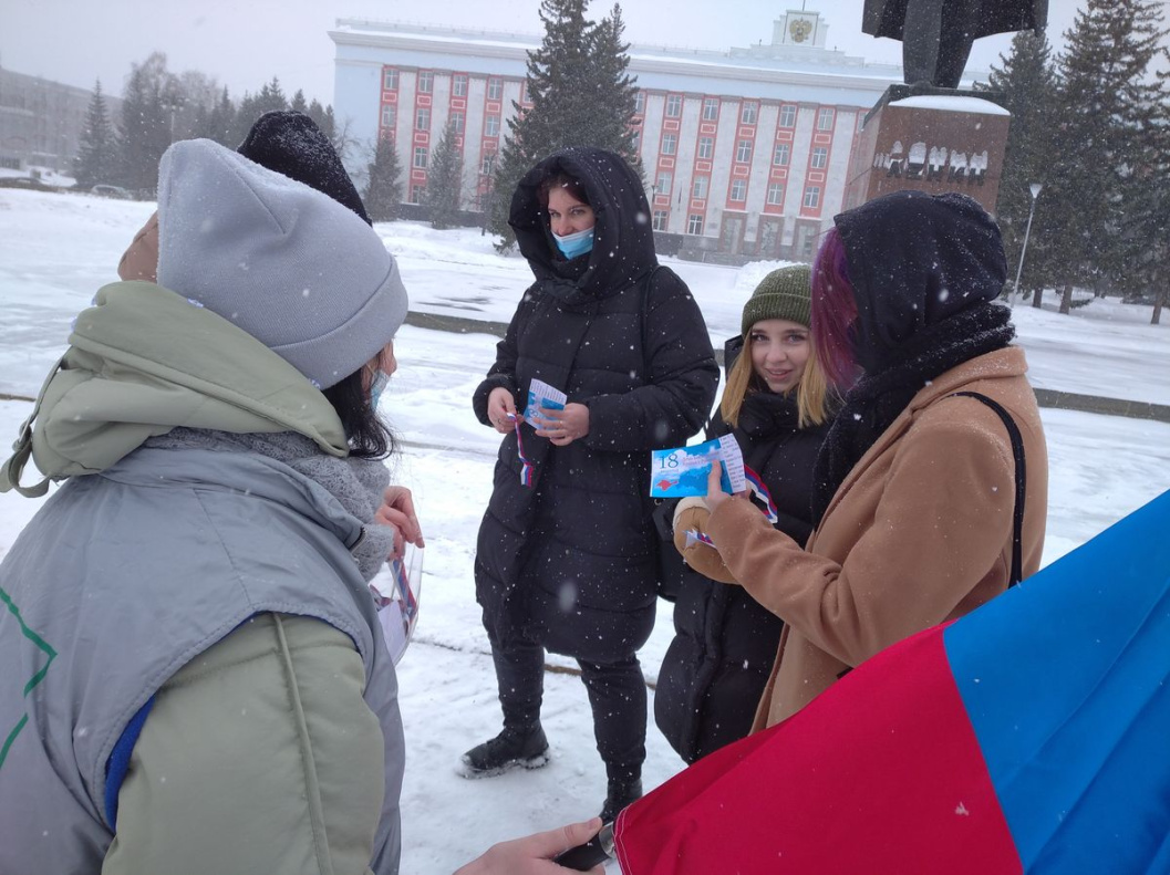 В Барнауле провели молодежную информационную акцию, посвященную годовщине воссоединения Крыма с Россией