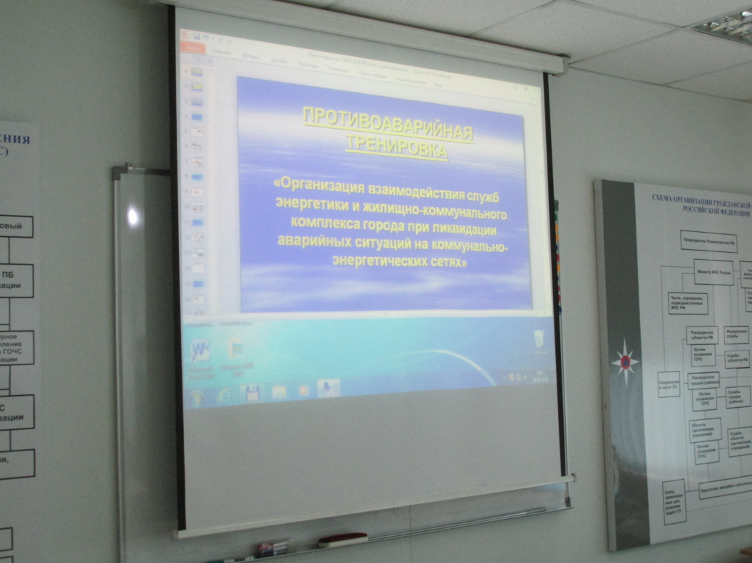 На тренировке рассматривались вопросы подготовки инженерных служб города к действиям при возникновении аварийных ситуаций на тепловых, газовых, электрических и водопроводных сетях с проигрышем реальных аварий, возникающих на объектах жилищно-коммунального хозяйства в преддверии зимних холодов.
