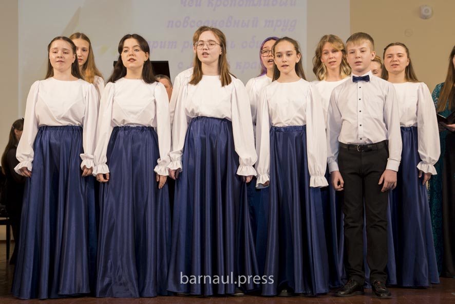 Для награжденных и гостей праздника прозвучали музыкальные номера в исполнении воспитанников и педагогов музыкальных школ, ансамблей и оркестров Барнаула.