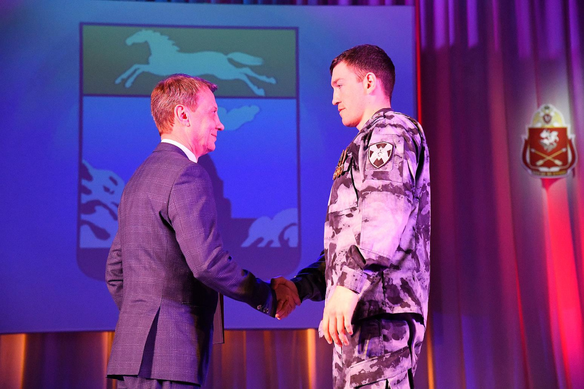 Фото Андрея Чурилова«В Росгвардии служат настоящие профессионалы, от которых зависят мир и спокойствие, уверенность в завтрашнем дне. Барнаульцы искренне благодарны за безупречную службу и верность присяге находящимся в зале, и тем, кто в праздничный день остаётся на боевом посту. Особой признательности заслуживают ветераны, заложившие лучшие традиции Росгвардии и воспитавшие достойную смену. Убежден, что деятельность войск национальной гвардии будет и впредь соответствовать самым высоким стандартам»