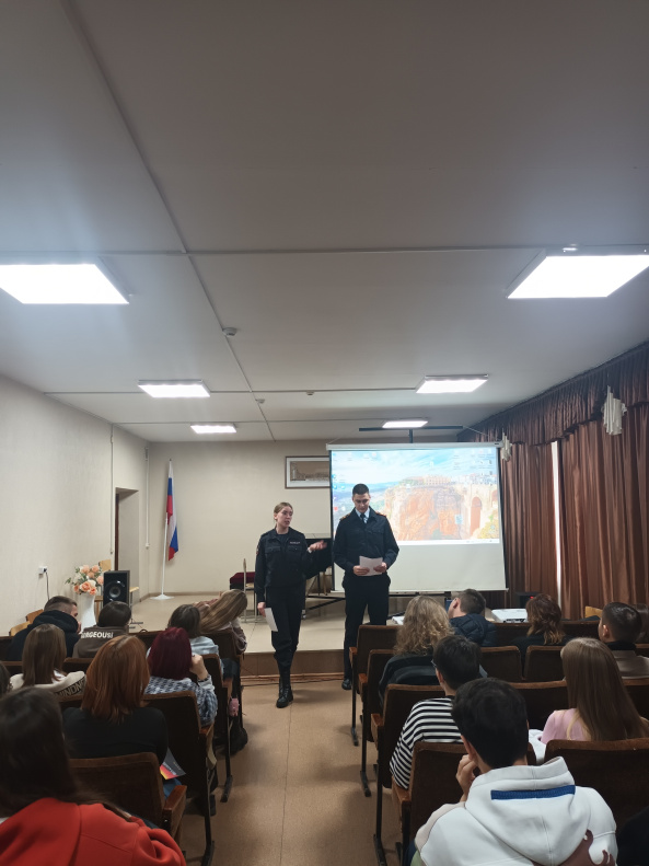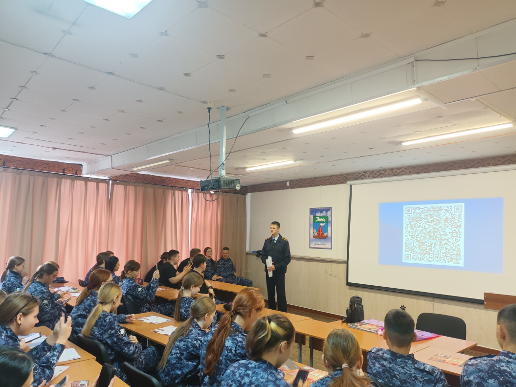 За третью неделю проведено шесть выходов в образовательные учреждения. В мероприятиях приняли участие 645 человек. На текущей неделе курсанты ФГКОУ «Барнаульский юридический институт Министерства внутренних дел Российской Федерации» выступили перед студентами с проектом «Равный — равному», посвященным профилактике экстремизма и терроризма.