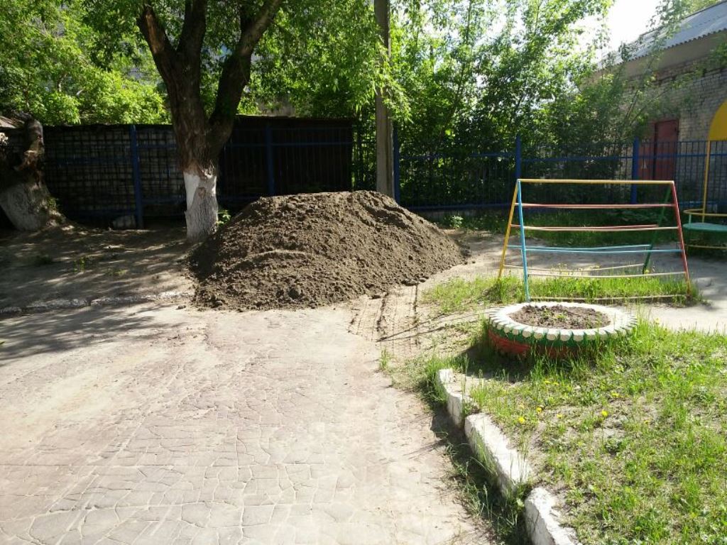 Также для обустройства клумб и цветников на территории детсадов завезли землю.