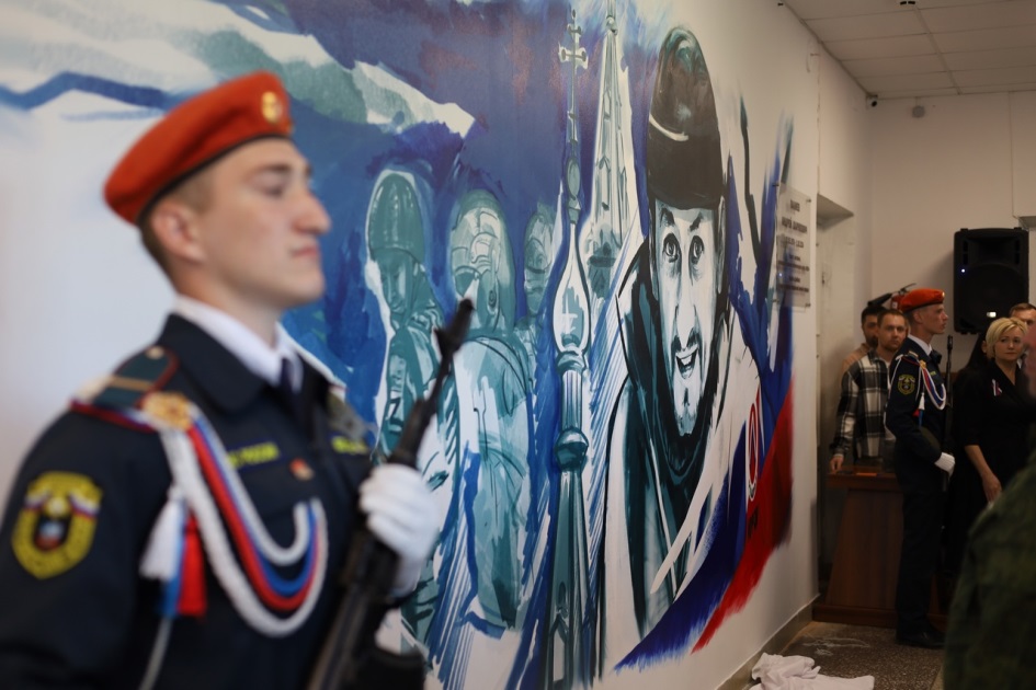 В барнаульском лицее №52 состоялось торжественное открытие мурала в память о герое СВО, педагоге Андрее Валиеве