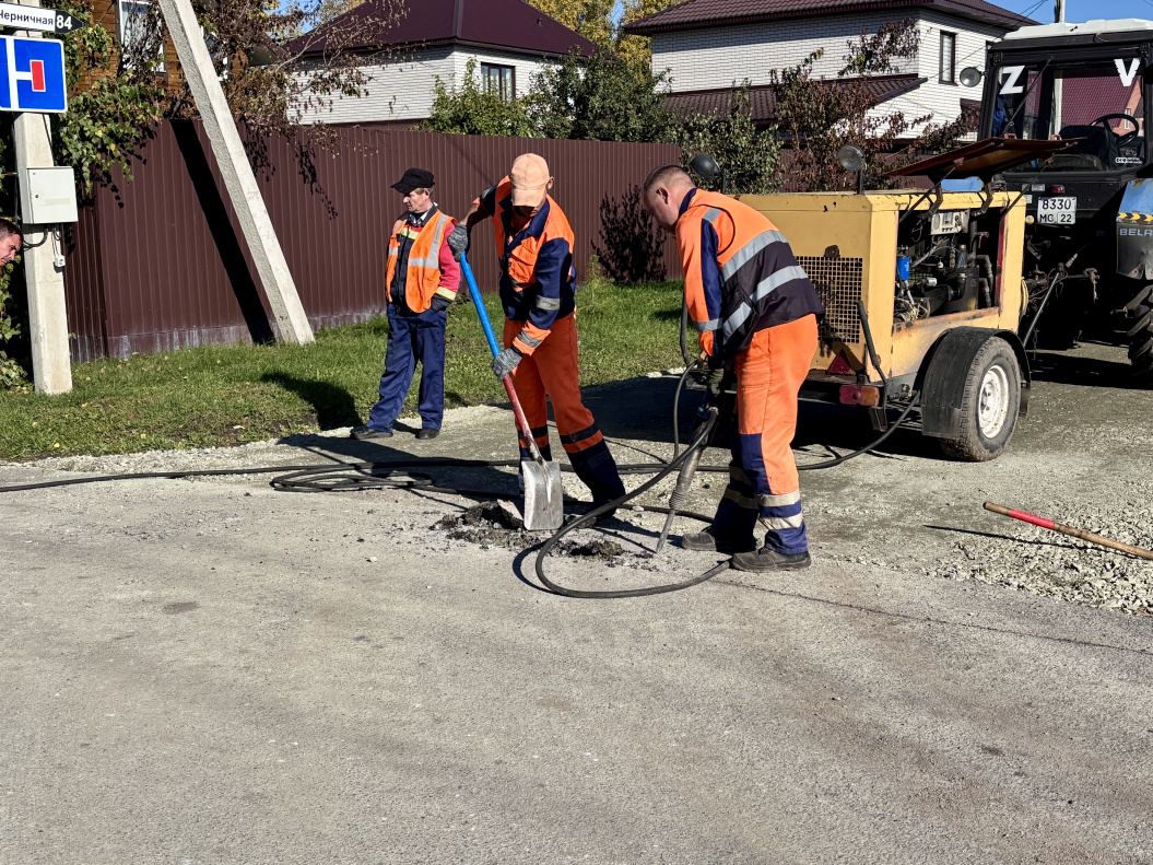 Сегодня в рамках реализации проекта специалисты проводят работы по укладке асфальтобетонного покрытия проезжей части по улице Черничной от дома № 76 до дома № 92.