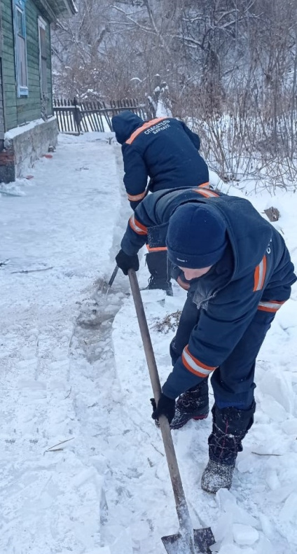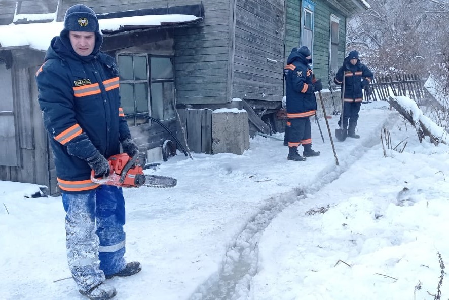 На месте работали инструментами и горячей водой спасатели аварийно-спасательного формирования городского управления ГОЧС совместно с администрацией Октябрьского района. Это позволило отвести родниковые стоки по склону в промышленное озеро, чтобы в дальнейшем исключить подтопление домов по улицам Красноярской и Заозерной.