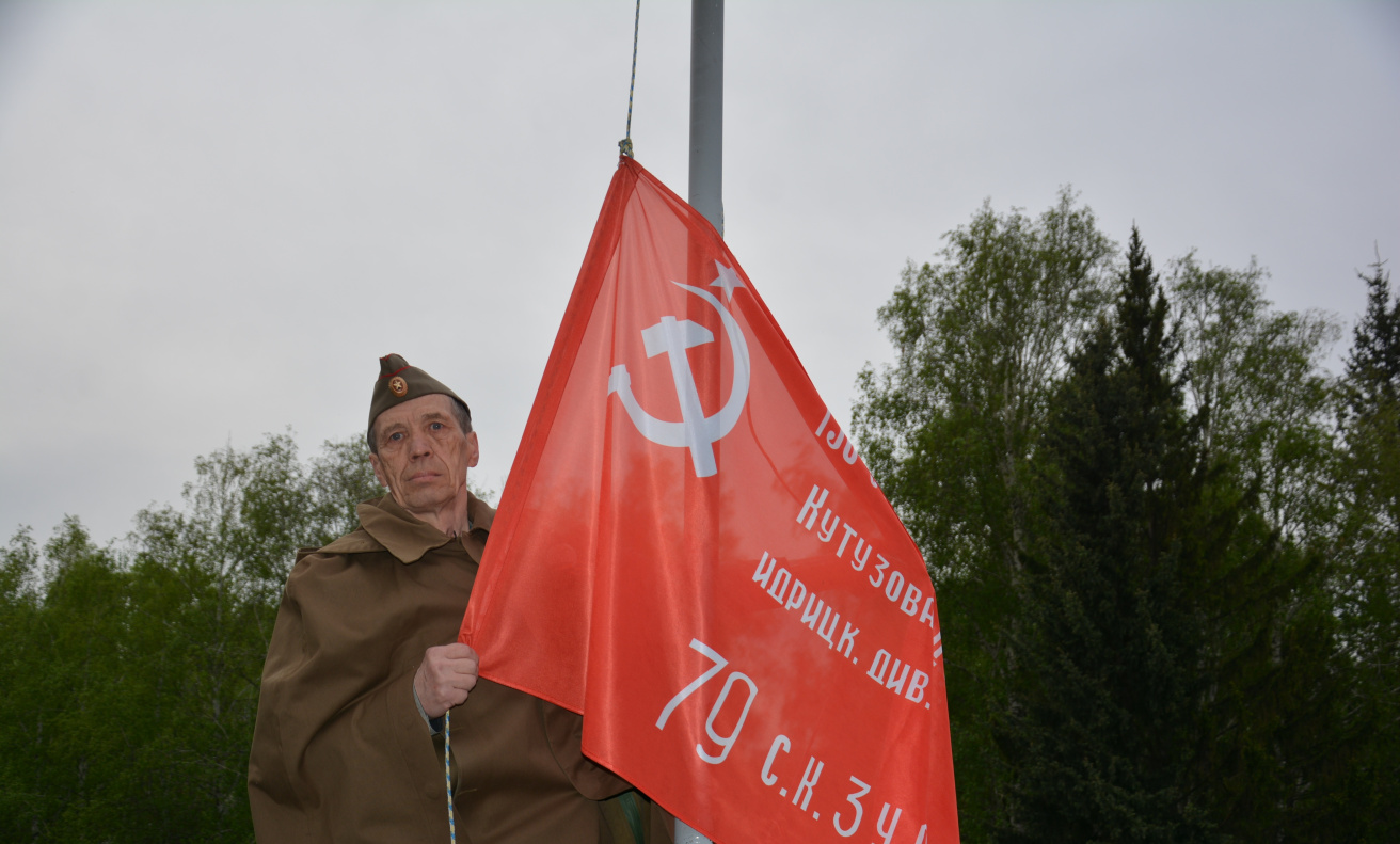 В День 80-летия Победы над администрацией Ленинского района подняли копию легендарного Знамени Победы