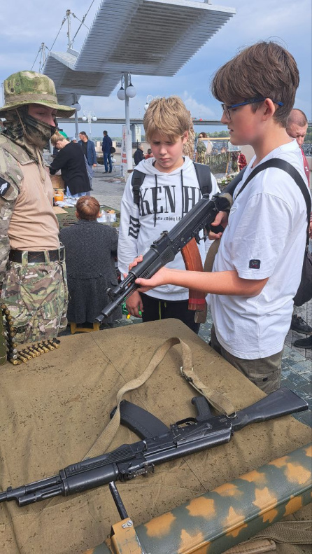 На площадке горожане знакомились с образцами современных вооружений и экипировки военнослужащих, с БПЛА и средствами оказания первой медицинской помощи, а также смогли оказать помощь фронту в виде плетения маскировочных сетей.