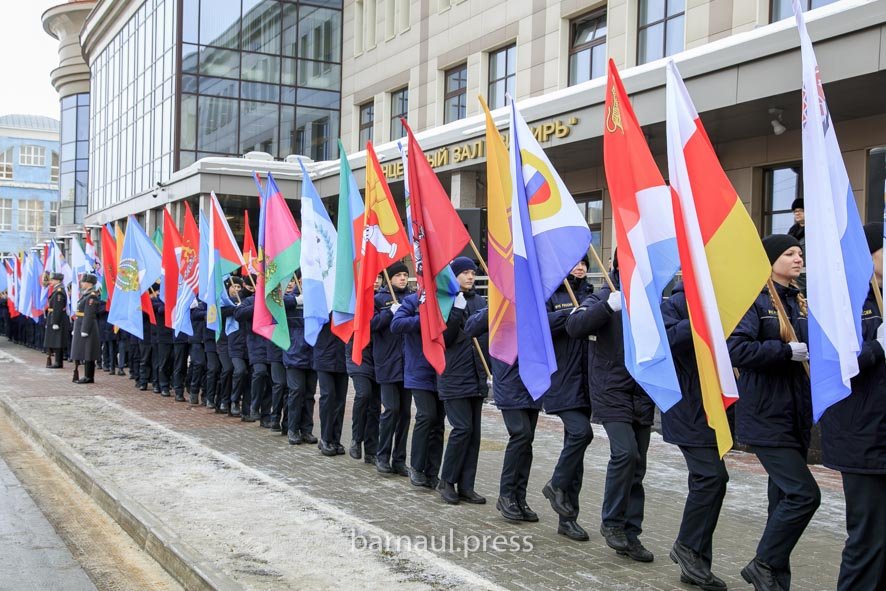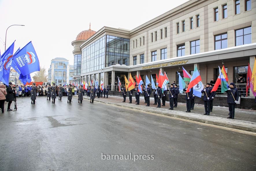 Перед концертом на улице Пушкина прошло торжественное мероприятие "Слава защитникам Отечества!" в поддержу бойцов, участвующих в специальной военной операции. В нем приняли участие студенты, члены Барнаульской народной дружины, представители общественных и ветеранских организаций. Началось торжественное мероприятие с парада регионов – флагоносцы внесли флаги всех 89 субъектов Российской Федерации, в их числе официальные символы четырех новых регионов страны: Донецкой и Луганской народных республик, Запорожской и Херсонской областей.