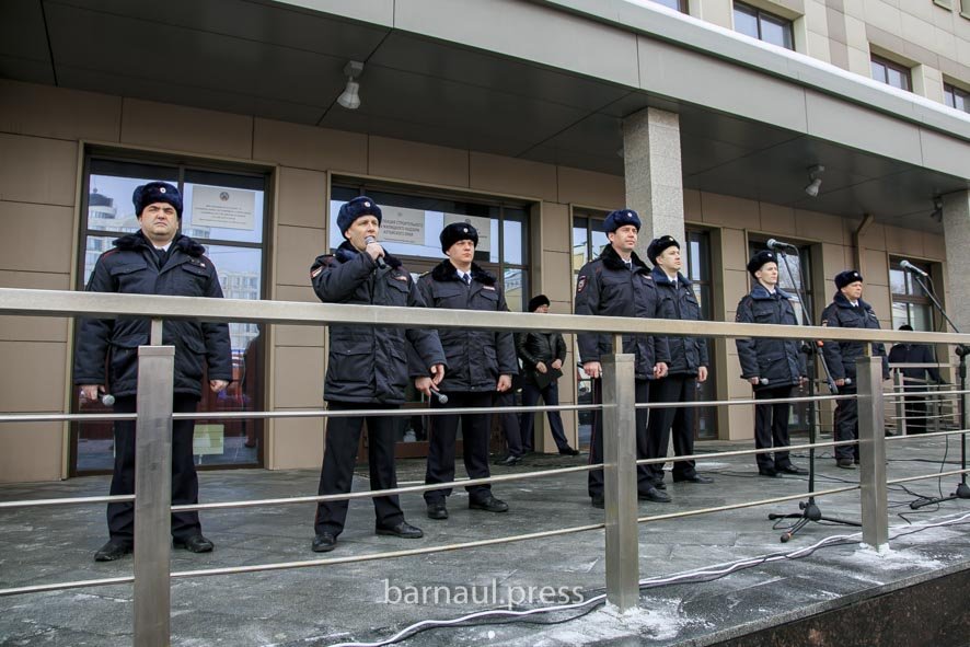Выступили творческие коллективы города. Взвод почётного караула БЮИ МВД России продемонстрировал показательное выступление по строевой подготовке. Творческие номера исполнили ансамбль песни и танца культурного центра МВД России по Алтайскому краю и Заслуженный работник культуры России Олег Марков. Прозвучали композиции «Россия своих не бросает», «Дело верное», а также известные песни из кинофильмов «Офицеры», «Белорусский вокзал» и других.
