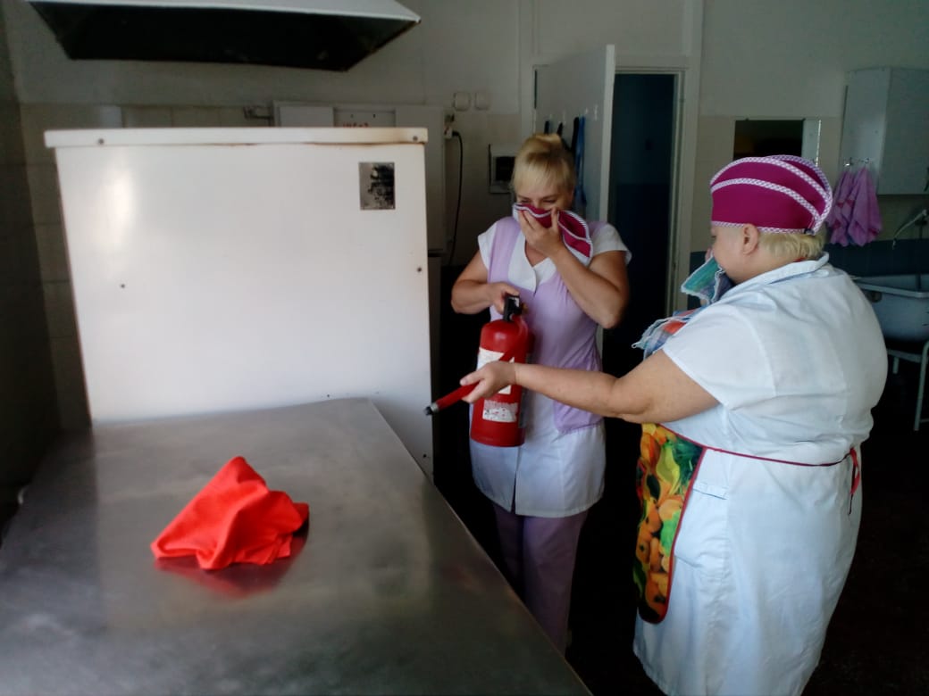 Помимо тренировочной эвакуации, сотрудники пожарной части провели инструктаж о мерах и правилах безопасности на рабочем месте. Особое внимание они уделили использованию средств тушения пожара: сотрудники сада смогли попрактиковаться в использовании огнетушителя.