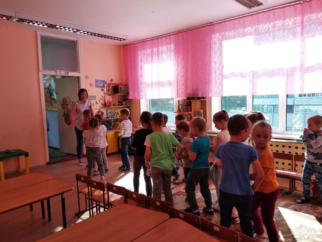 Воспитанникам сада показали, как правильно покидать место пожара: быстро, не толпясь, зажимая нос и рот носовым платком. Воспитатели вывели детей на предусмотренное для эвакуации безопасное место на улице.