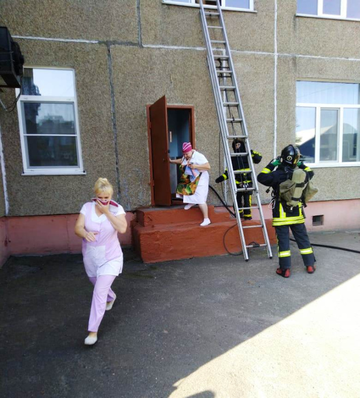 По сценарию, огонь вспыхнул на первом этаже в пищеблоке, а весь второй этаж попал в задымление. На этом этаже остался заблокированным взрослый человек. Сотрудники 1 ПЧ ФПС 1ОПФС по Алтайскому краю вывели из изолированного помещения пострадавшего и оперативно ликвидировали условный пожар.