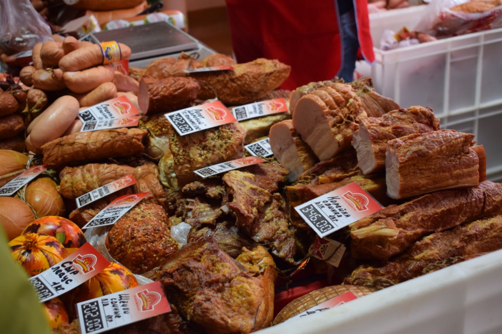 На ярмарке представлен широкий ассортимент продовольственных товаров по сниженным ценам: мясные и колбасные изделия, фрукты, сыры, молоко и молочная продукция, хлебобулочные изделия и крупы, масло, яйца, напитки, кондитерские изделия, сладкая вата, попкорн, шашлыки и многое другое.