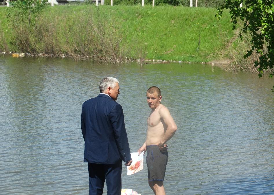В ходе рейда с группами людей, находящихся вблизи водоемов, проведены профилактические беседы, розданы памятки и предупреждения об административной ответственности за нарушение правил пребывания на водоемах.