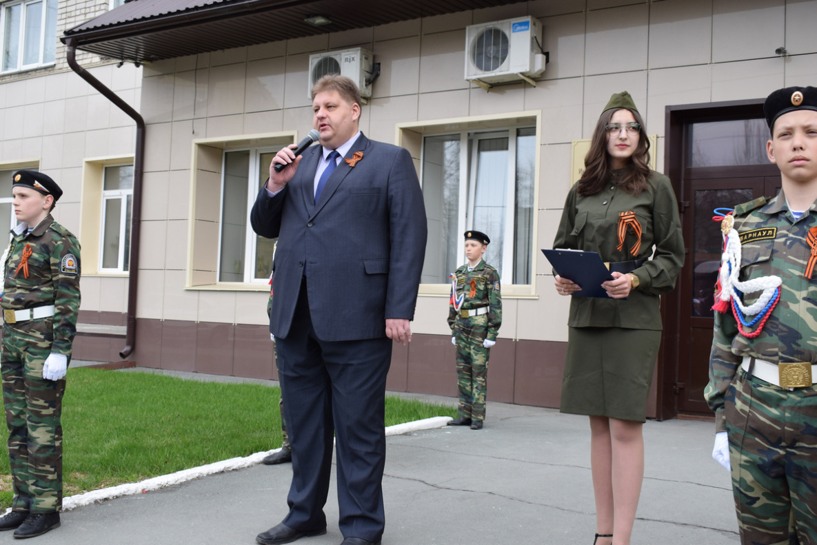 Право поднять Знамя Победы предоставили участнику Великой Отечественной войны Михаилу Яковлевичу Дегтяреву при участии кадетов школы №88.