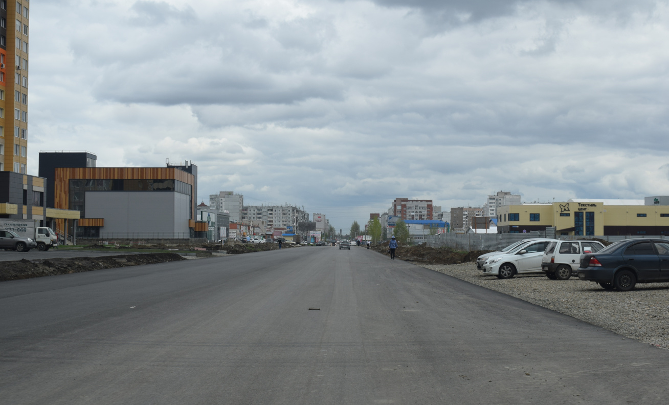 В настоящее время асфальтовое покрытие уложено по всей ширине улицы Балтийской от улицы Попова до улицы Сергея Ускова. Далее подготовленное корыто под проезжую часть автомобильной дороги отсыпается щебнем и ведутся работы по укладке ливневой канализации.