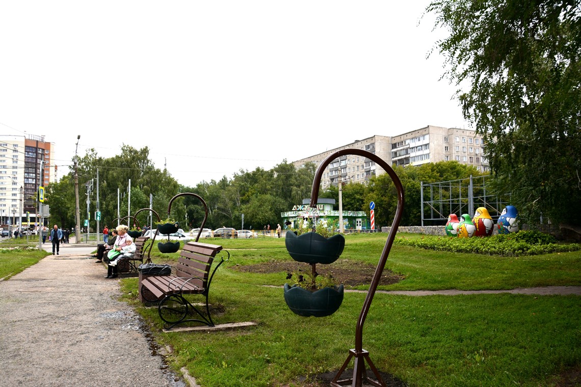 На этой неделе на ул.Юрина, 208 вдоль тротуара появились современные лавочки, урны и вертикальные цветочные конструкции, в которые уже успели высадить рассаду однолетних культур.