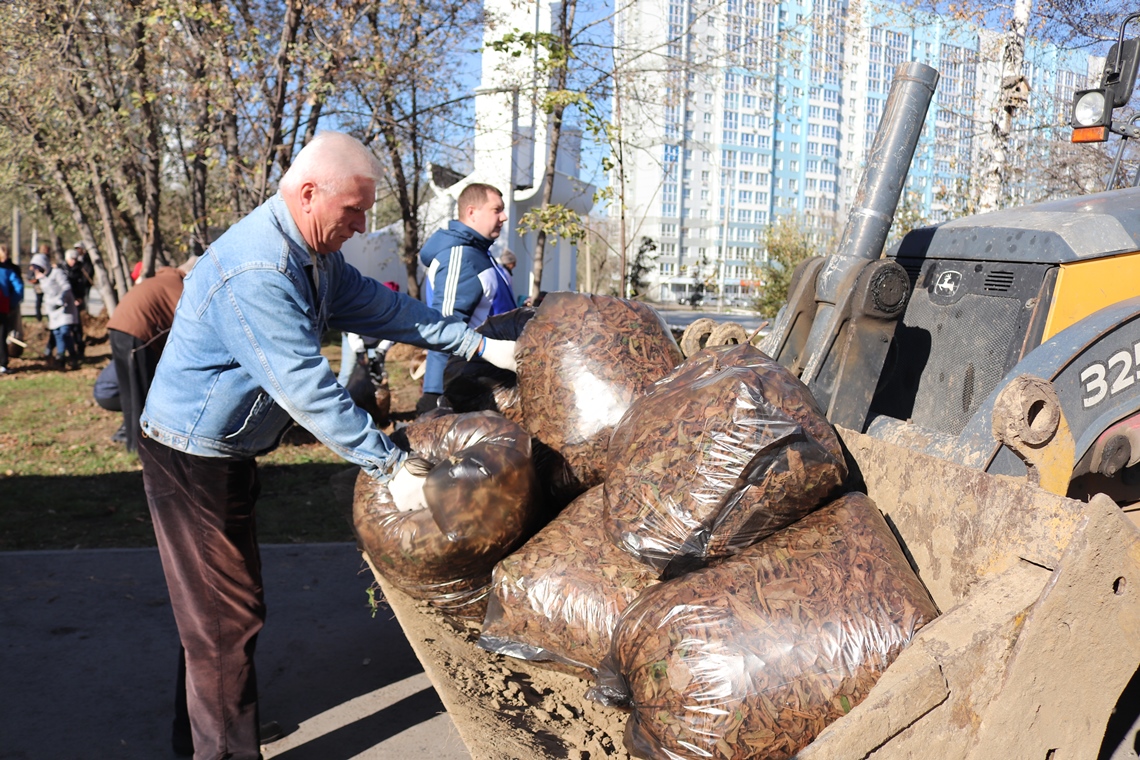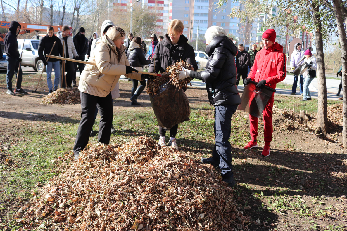 Они собрали мусор и опавшую листву. Вывезено 60 мешков мусора.