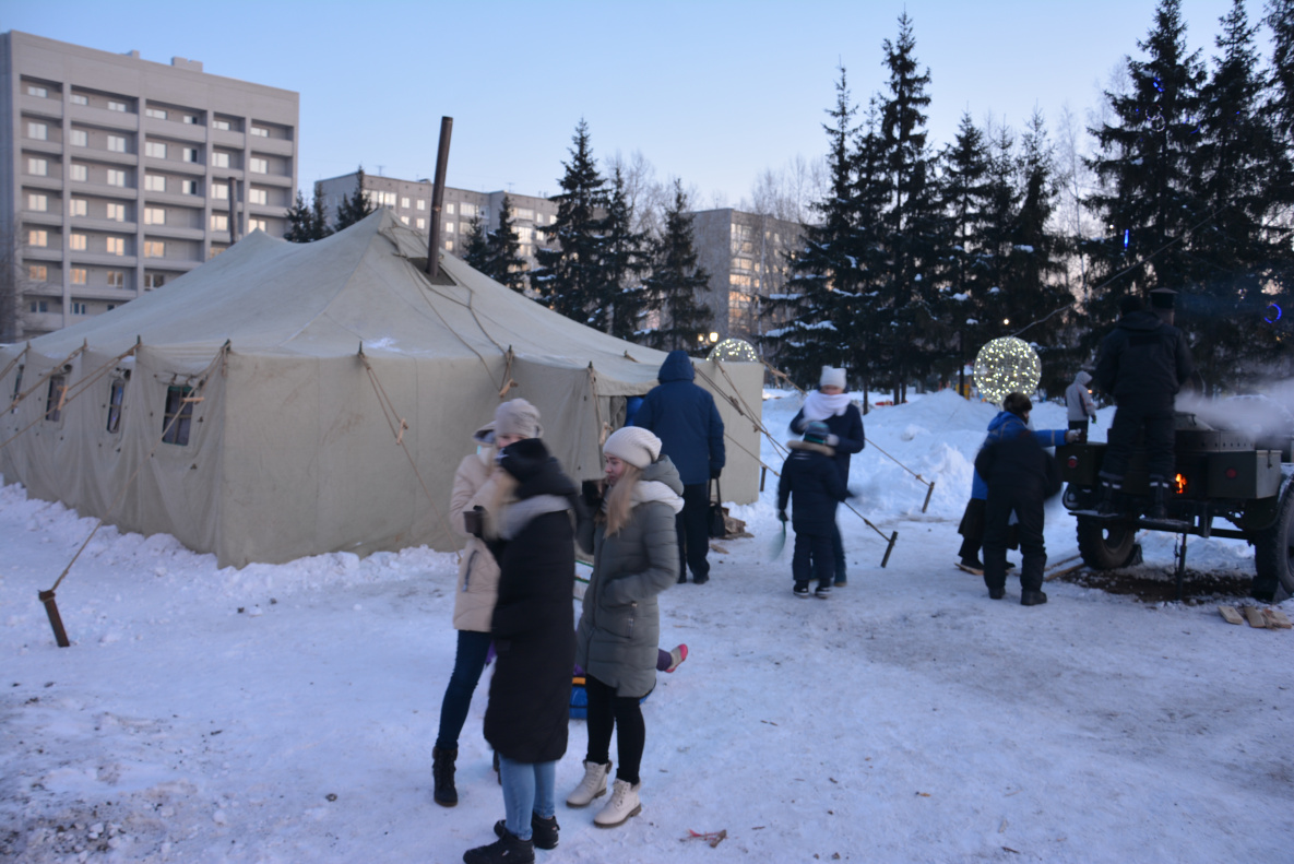 Также на площади работала полевая кухня с горячим чаем, велось торговое обслуживание организациями общественного питания, местными товаропроизводителя сувенирной и новогодней продукцией. Гости праздника имели возможность прокатиться на санях, пони, принять участие в конкурсах, аттракционах, спортивно-игровых площадках.
