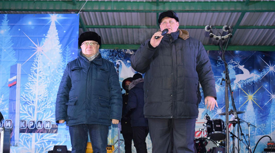 Глава администрации Индустриального района Сергей Татьянин и депутат АКЗС, директор Барнаульского зоопарка «Лесная сказка» Сергей Писарев торжественно открыли главную районную елку и поздравил жителей и гостей праздника с наступающим Новым годом и Рождеством.