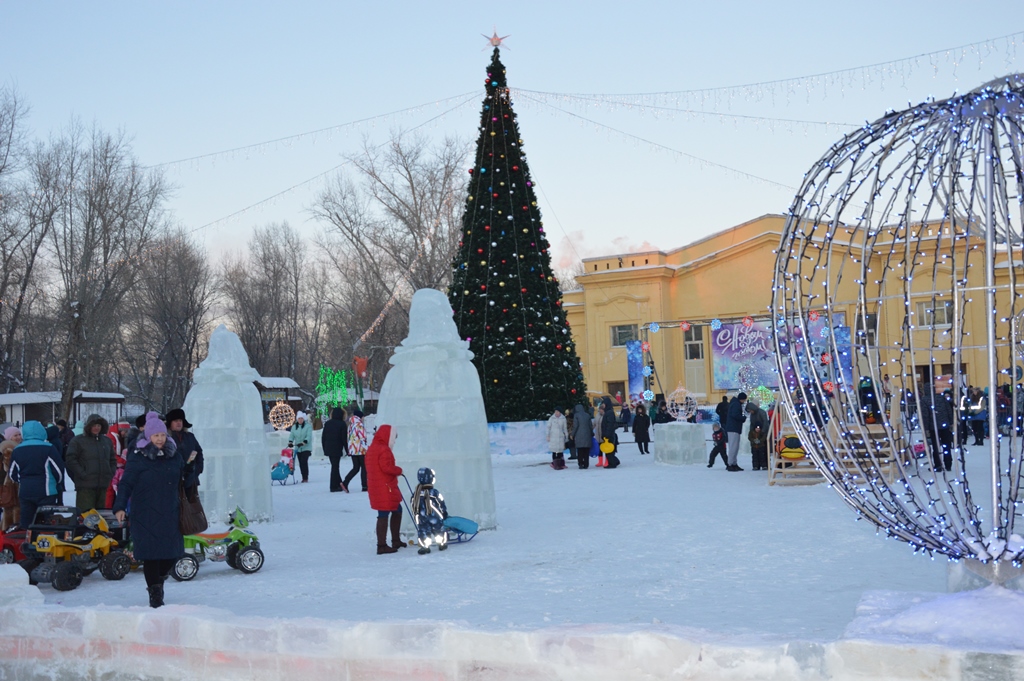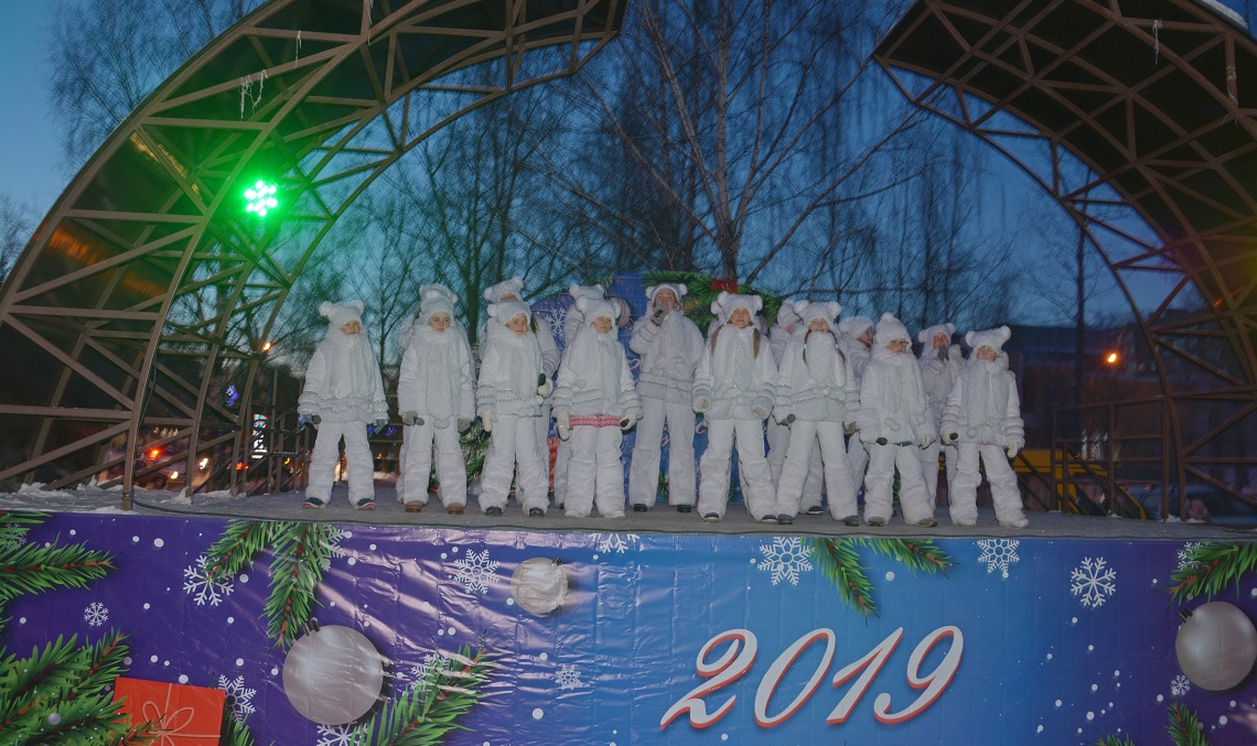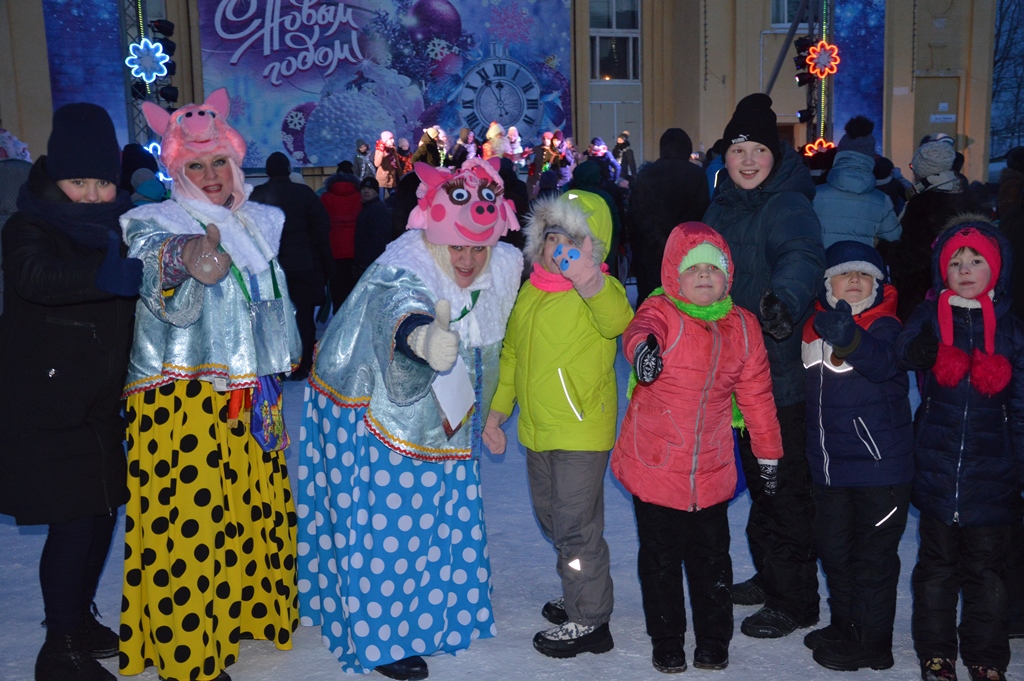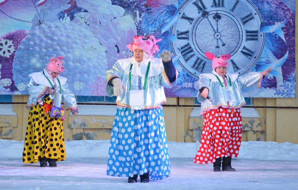 Театрализованное представление «Ёлка в гости всех зовет» для жителей района и города подготовили артисты Дома культуры «Октябрьский», с творческими номерами выступили театр танца «Фиеста», ансамбль народного танца «Палитра» и ансамбль эстрадной песни «Вдохновение». Три хрюшки Пушинка, Плюшка и Румяша, а также Дед Мороз со Снегурочкой веселили гостей праздника кричалками, играми и танцами. Участникам конкурсов подарили ледянки, предоставленные компанией «Мартика».