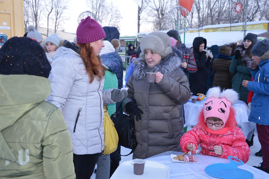 Всех желающих на празднике бесплатно угощали горячим чаем, печеньем и конфетами, а все дети получили сладкий подарок от Деда Мороза.