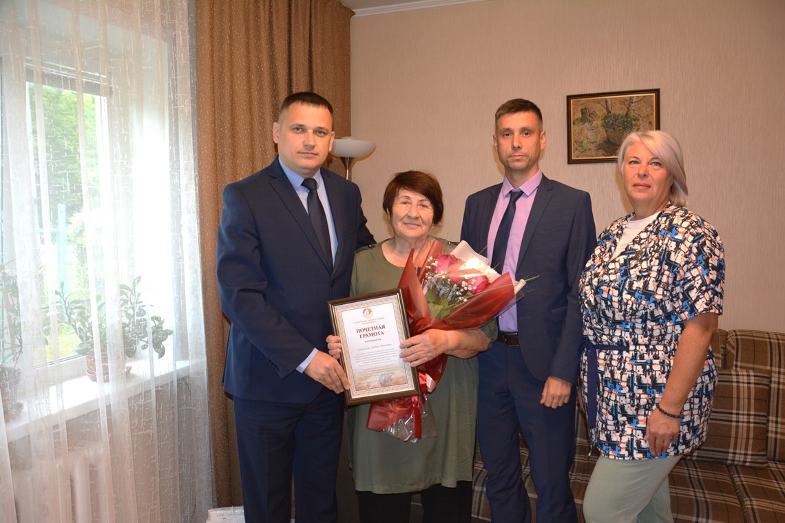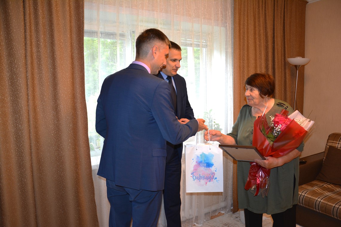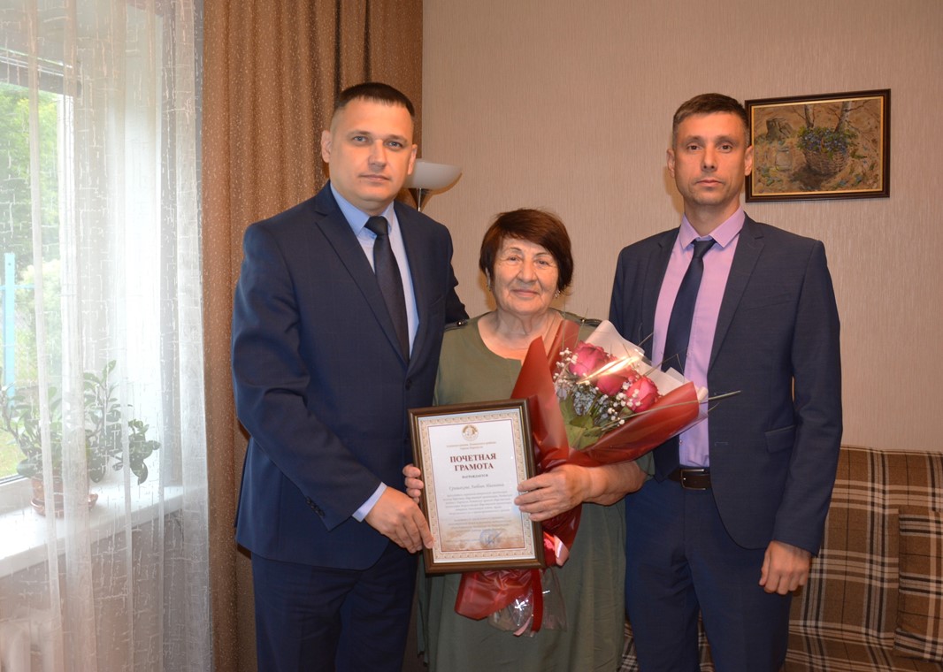 Сегодня глава администрации Ленинского района Евгений Авраменко совместно с главой Научногородокской сельской администрации Юрием Зеленским поздравили с юбилеем Любовь Ивановну, вручив ей Почетную грамоту администрации Ленинского района и пожелав ей счастья, крепкого сибирского здоровья и долголетия.