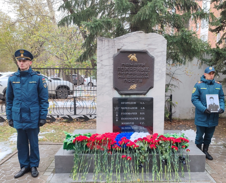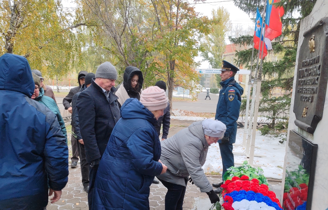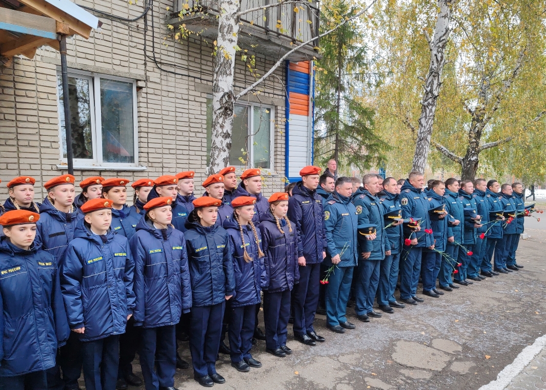 У мемориала памяти на территории пожарной части № 4 собрались представители руководства ГУ МЧС России по Алтайскому краю, родственники погибших, ветераны, личный состав гарнизона, учащиеся кадетского корпуса «Спасатель» лицея №52, чтобы почтить память пожарных, погибших при исполнении служебных обязанностей.