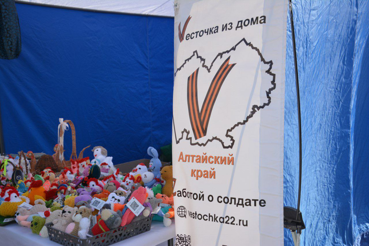 В ярмарке также приняли участие волонтеры фонда «Весточка из дома – с заботой о солдате». Все средства от реализации продукции (фрукты, блины, пряники, заварные супы, игрушки, сувенирная продукция направляются на нужды солдат в зоне специальной военной операции.