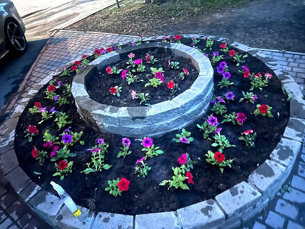Они восстанавливают целостность клумб, занимаются их окрашиванием и высаживают различные виды цветочной рассады: петунии, бархатцы и другие.