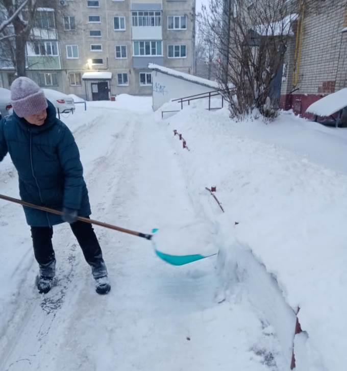 Дворниками управляющих организаций ведется работа по очистке от снега и наледи дворов, посыпке противогололедными материалами предподъездных площадок, осуществляется контроль за отсутствием снежных навесов на козырьках и кровлях жилых домов. В работах задействовано 210 дворников и три единицы техники.