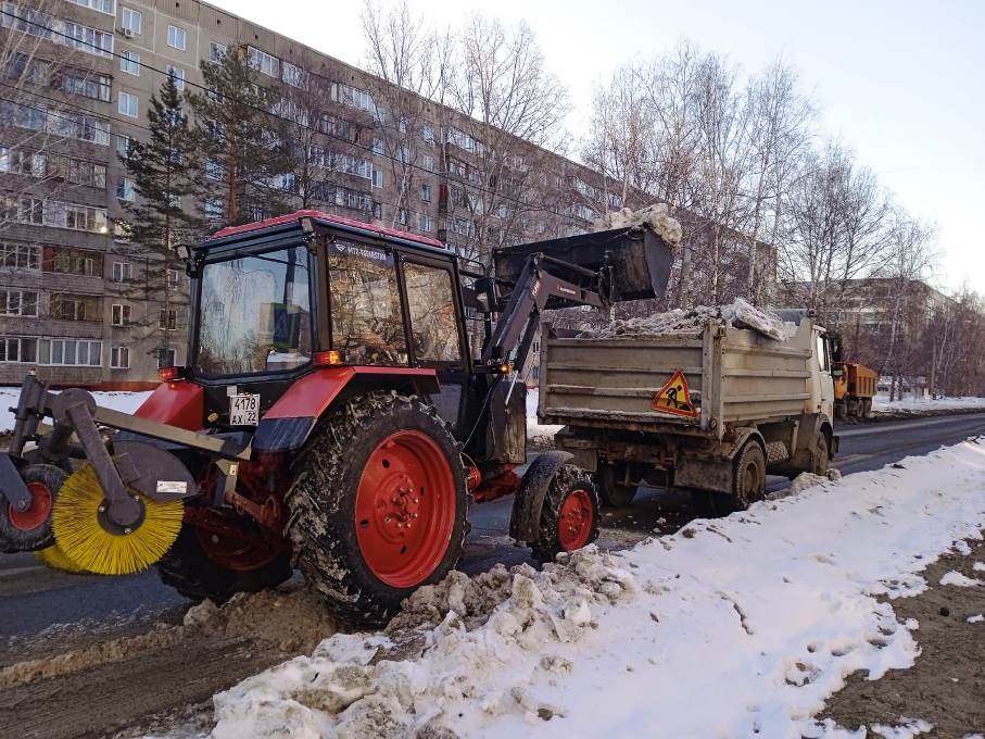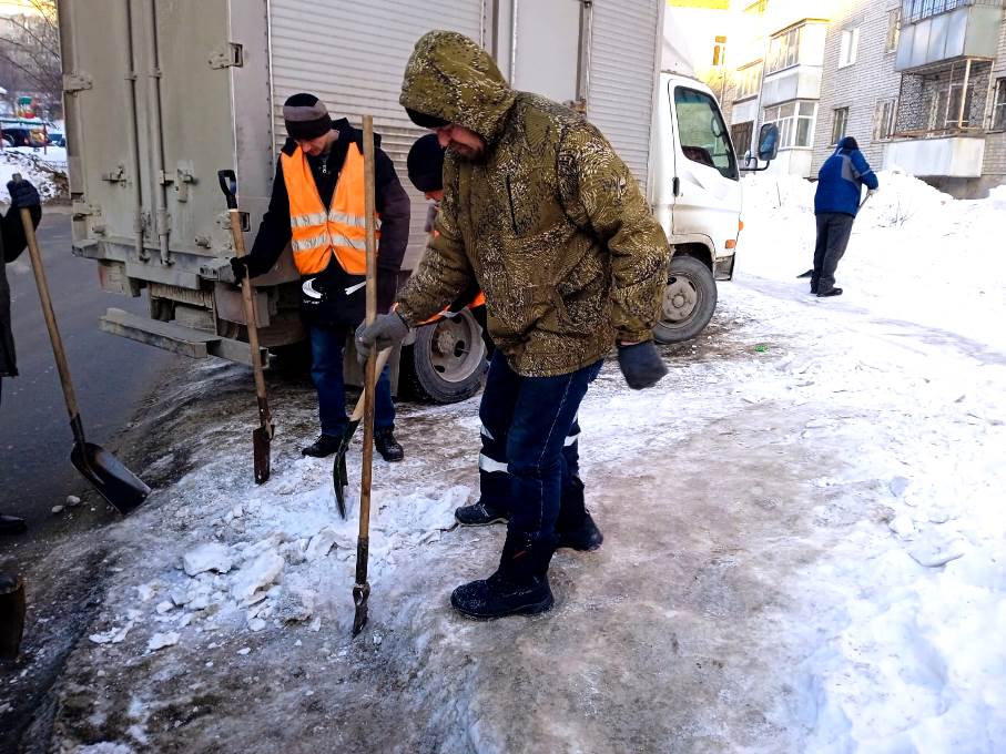 В Ленинском районе продолжаются работы по очистке от снега дорог и тротуаров