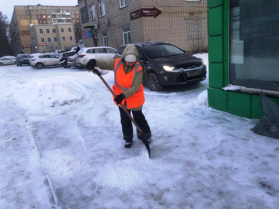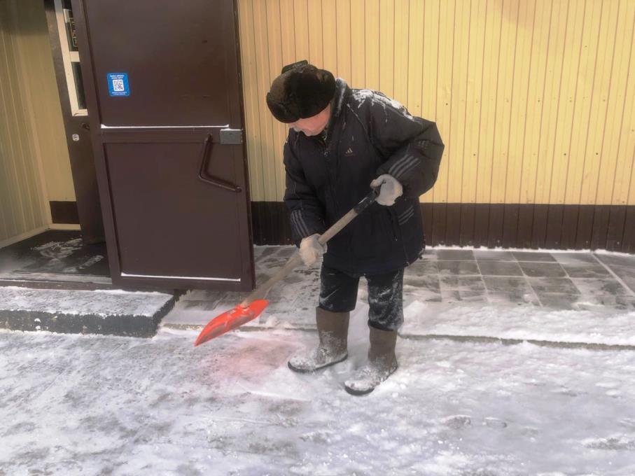 Дворниками управляющих организаций ведется работа по очистке от снега и наледи дворов, посыпке противогололедными материалами предподъездных площадок, осуществляется контроль за отсутствием снежных навесов на козырьках и кровлях жилых домов. В работах задействовано 98 дворников и две единицы техники.