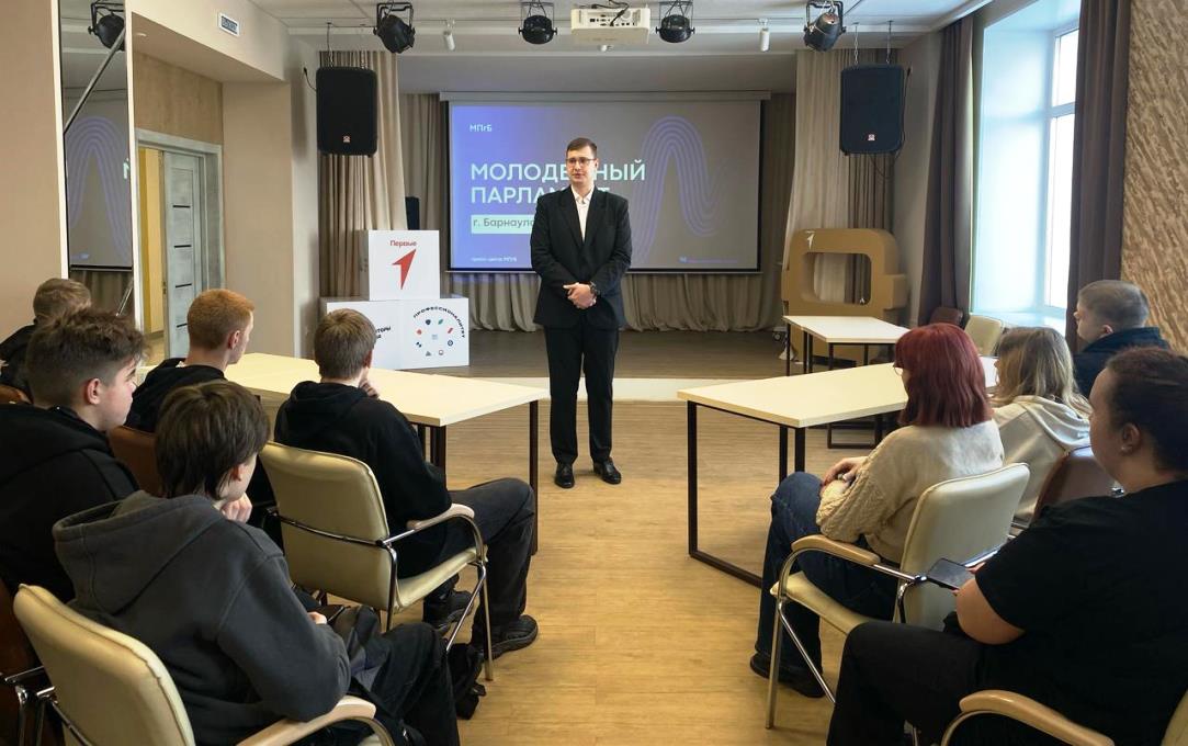 Председатель Молодежного парламента XIII созыва Кирилл Иванов встретился с учащимися Алтайского транспортного техникума.
