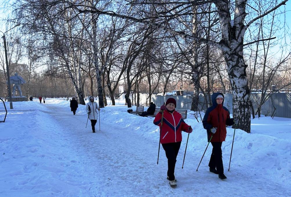 Сегодня в парке Целинников состоялись соревнования по скандинавской ходьбе среди представителей старшего поколения в рамках месячника военно- патриотического воспитания.
