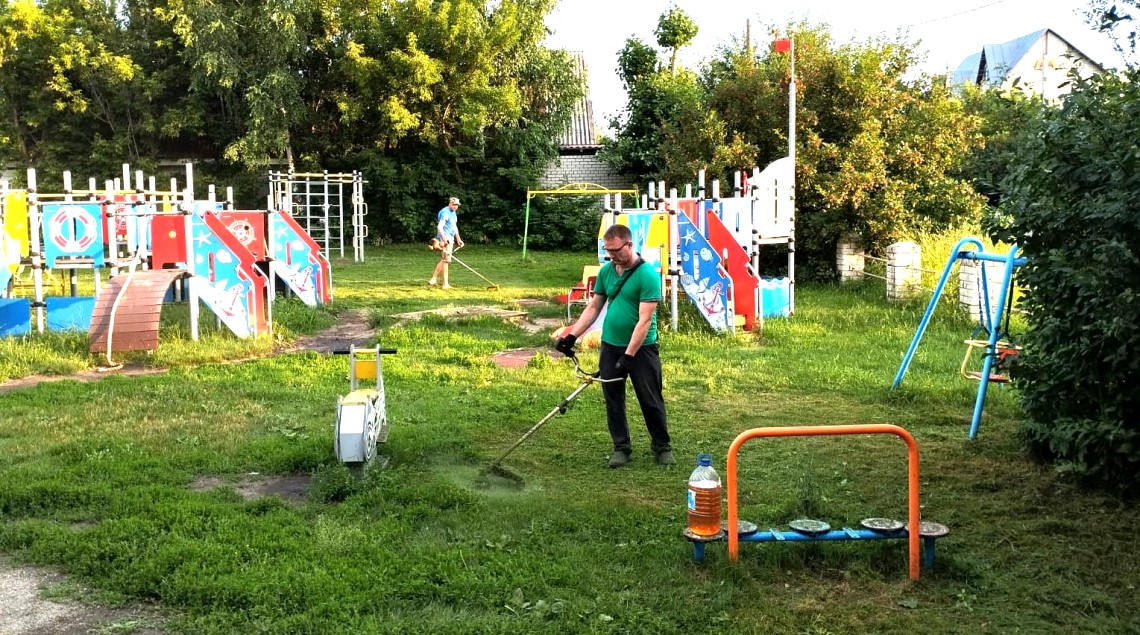 На пригородной территории района активисты ТОС п.Казенная Заимка в рамках благоустройства детской площадки, расположенной по ул.Кольцевая,11а, накануне жители скосили траву и навели там порядок.