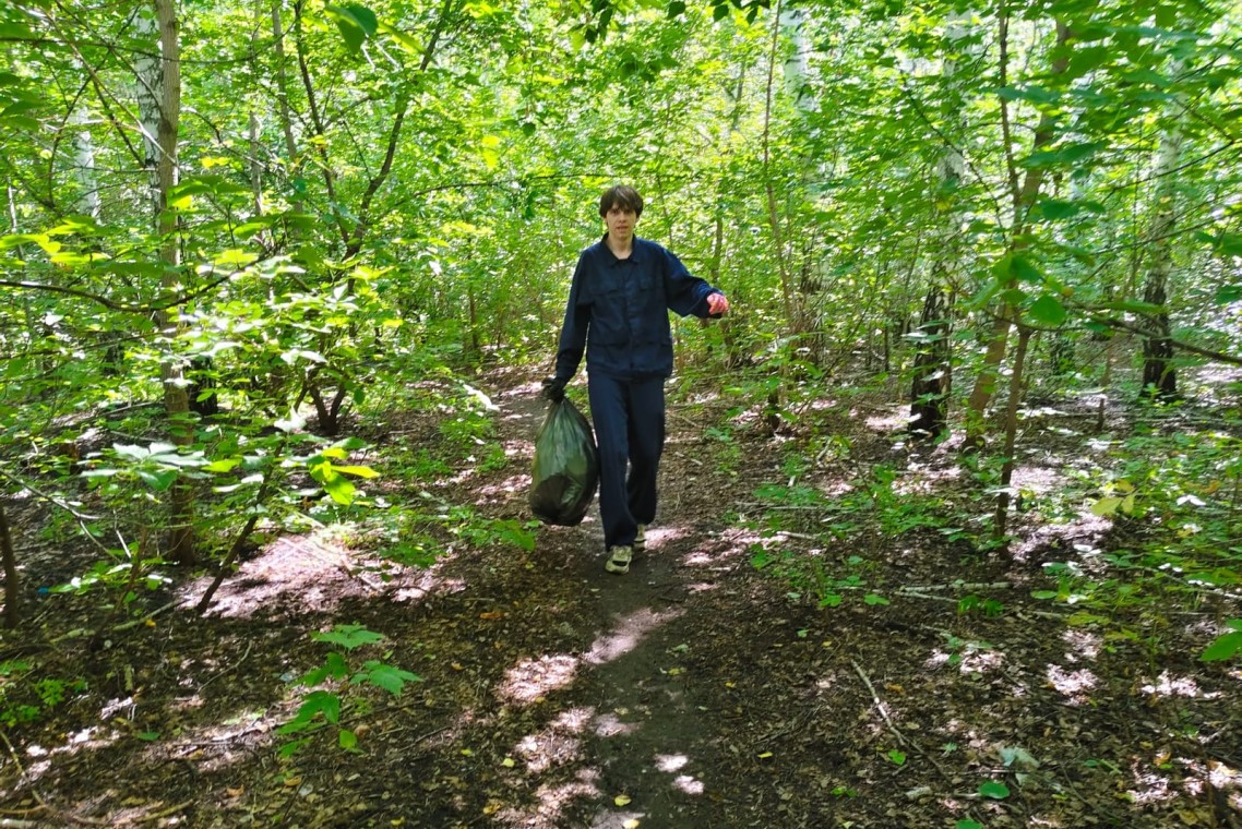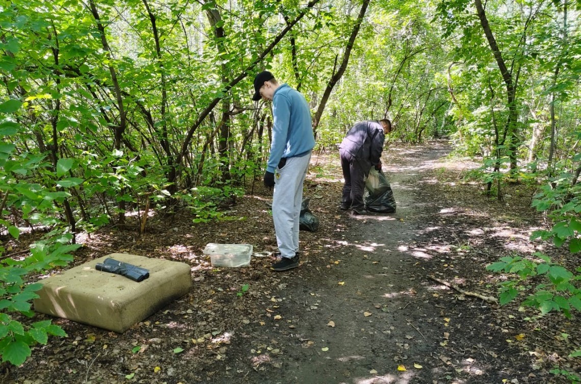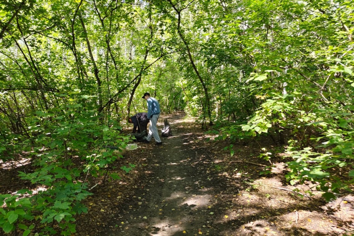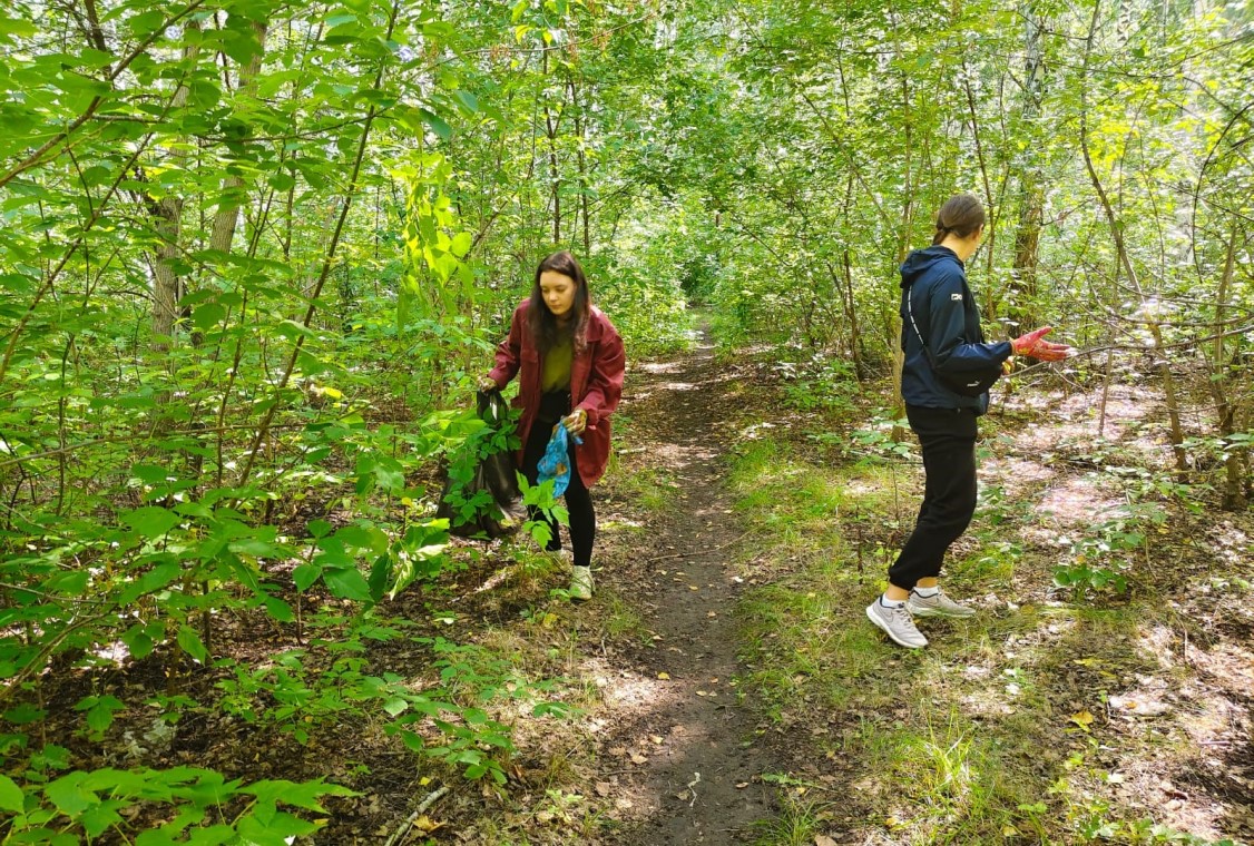 В Ленинском районе силами студенческого экологического отряда «Зеленый феникс» проведена акция по уборке мусора в березовой роще